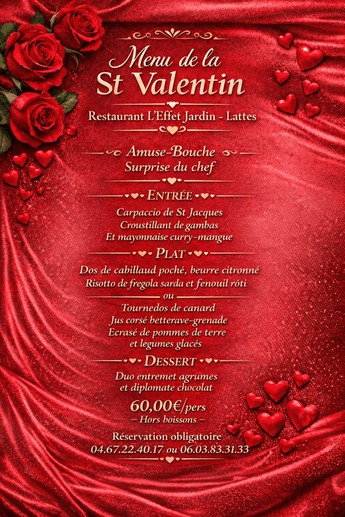Restaurant à Lattes , réservez votre repas de St Valentin Données sécurisées Votre Saint-Valentin à Lattes : Réservez Maintenant ! L’Effet Jardin, expertise culinaire méditerranéenne au cœur de Lattes Situé à Lattes, aux portes de Montpellier, L’Effet Jardin cultive depuis plusieurs années un art de vivre où gastronomie méditerranéenne et cadre naturel s’épanouissent en harmonie. […]